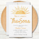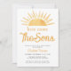 Invite family and friends to your sun-themed twin boy's baby shower with this fun invitation.
