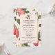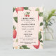 Perfeito para um convite de chá de fraldas de morango doce gêmeo—este evento com tema de morango é ideal para um primavera ou chá de fraldas de verão. Padrão de morango doce de berço com duas bagas gêmeas no topo. Plano de fundo rosa embebido.