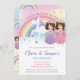 Whimsical Twins Princess e Unicorn Convite de aniversário, com um unicórnio arco-íris e princesas adoráveis. Personalize este incrível Convite de festas Princesa e Unicórn com os detalhes do seu partido de forma fácil e rápida, basta pressionar o botão personalizá-lo para reorganizar e formatar o estilo e a colocação do texto. Design Exclusivo (c) O Feliz Cat Studio. Itens correspondentes no repositório!