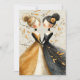 Cute wedding invitation for Lesbian, LGBTQ couple. Two hand drawn brides holding hands stand side by side in a garden golden yellow leaves and vines. They have their hair up and pink roses in their hair, cute pencil drawing for your special day.