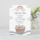 Adorable watercolor Noah’s Ark design featuring cute animals and soft waves under a rainbow sky. A sweet “Two by Two” theme perfect for twin birthdays, sibling celebrations, baby birthdays, and matching party decor or stationery for a faith-friendly celebration.