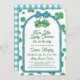 Are you about to welcome two little lucky charms into your life? This blue and green girl twins baby shower invitation has a pair of four-leaf clovers tied with a blue bow. The St Patrick's Day baby shower invitation wording is framed by a blue arch. The background features a matching clover pattern, all in a charming hand-drawn style.