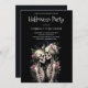 Two Romantic Gothic Human Skeletons Embracing Surrounded By Lush Floral Arrangements Halloween Party Invitation Cards.