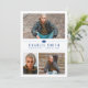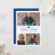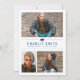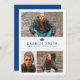 Anúncios de graduação em tipografia modernos e mínimos com 3 fotos, convite divertido para festas de formatura nas costas, em azul e branco, Personalize-o com sua própria foto e informações sobre festas.