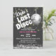 © Socialite Design Inc. & LICENSORS. Comemore uma Festa de solteira Disco convidando os convidados com este último convite à festa de solteira da discoteca. As cores são prata, branca, rosa e cinza. O design incorpora uma bola prateada de disco e luzes douradas / cordas brancas como fundo.