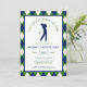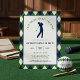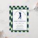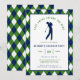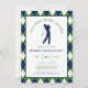 Celebre o noivo com um dia nos links! Este convite de despedida de solteiro com tema de golfe apresenta uma clássica borda com padrão argyle nas cores azul-marinho, verde e branco que captura perfeitamente a estética do clube campestre. O centro exibe uma silhueta limpa de um golfista no meio do swing, combinada com a inteligente manchete "Último Swing Antes do Anel". Este modelo é totalmente personalizável, permitindo que você atualize facilmente o nome, data, hora de saída e detalhes do local. Esteja você planejando 18 buracos completos ou uma tarde casual no driving range, este convite elegante e profissional define o tom certo para uma celebração sofisticada.