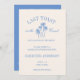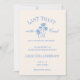 Bachelorette de praia personalizada Última torrada no modelo de convite do logotipo costeiro com um logotipo de Festa de solteira inspirado retroativamente com palmas em azul sobre fundo branco creme. Um convite divertido com um logotipo do Fim de Semana da Bachelorette que incorpora o nome da noiva. Lá atrás há espaço para o seu itinerário de fim de semana da Bachelorette para que o Clube das Raparigas possa preparar-se para o fim de semana da festa! O convite perfeito para uma Bachelorette de Túlio, Cancun Bachelorette, Miami Bachelorette ou outra festa na praia.