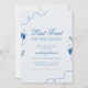 Surpreenda suas amigas com este convite de despedida de solteira elegante, com fundo azul claro, ilustração de coquetel fofo e detalhes editáveis. Personalize facilmente clicando na opção "personalizar".