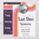 Último modelo de itinerário e convite de despedida de solteira disco, personalizável, editável, download, festa adulta retro groovy disco