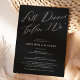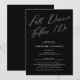 Última Janta antes de "Eu faço". Um clássico, na moda e elegante e simples e branco no ensaio de casamento preto janta com a noite anterior escrita em letra de caligrafia. Uma ideia perfeita de casamento de ensaio.