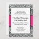 Elegante padrão chevron em preto e branco clássico com uma faixa rosa vibrante no centro. Adequado para qualquer ocasião feminina - Aniversário de 21 anos, festa de despedida de solteira, Quinceañeras ou festas de Sweet Sixteen.