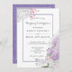 As flores liláticas pintadas e esboçadas artisticamente usando tons ultravioletas e cinzas moles românticamente traçam seu convite para comemoração de casamento. Reverte para sutis floretes de velo lilás e flores esboçadas de cinza que envolvem suas iniciais. Casamento da primavera com lavandas, cor-de-rosa-creme, branca e cinza-pomba.