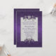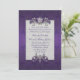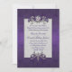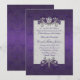Convite roxo iridescente chique do casamento tema damasco, com gráficos de um quadro de prata do tom decorado, com as jóias florais elegantes e uma área de texto branca da pérola. Personalize todo o texto para serir suas necessidades do casamento. Os produtos de harmonização estão disponíveis.