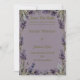 Este convite para o casamento apresenta um design elegante e inspirado no vintage, com um quadro floral com tema de lavanda. Os delicados elementos botânicos com aquarela, incluindo flores púrpuras e folhas verdes, úmidas, criam um encanto romântico e rústico. O fundo combina uma borda bege suave com um centro de lavanda sem som, oferecendo um toque sofisticado e eterno. Os sotaques florais pintados à mão artísticos acrescentam um toque da natureza e da serenidade, fazer-a uma escolha perfeita para uma celebração de casamento clássica, jardim ou rústica.