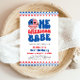 O Primeiro Convite de aniversário de 4 de julho de Um Babe Americano é um tema delicioso e patriótico para uma pequena celebração de marco. Apresentando cores vibrantes, vermelhas, brancas e azuis, juntamente com estrelas e listras, este convite dá o tom para um festivo e memorável partido no Dia da Independência. É especificamente adaptado para o primeiro aniversário, misturando a alegria de uma celebração de aniversário com o espírito do orgulho americano e do patriotismo.