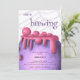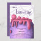 Adorável convite de chá de fraldas de menina com uma ilustração de um caldeirão de bruxa borbulhando em cores rosa e roxo. Ilustrada e projetada por Patricia Alvarez.