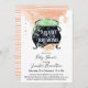 um bebê está a preparar o Convite de Pêssego de Chá de fraldas de Halloween