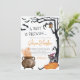 Um bebê está se preparando! Este design bonito de chá de fraldas apresenta uma cena de aquarela pintada à mão de um caldeirão borbulhante com fumaça laranja e um gato bonito vestindo o chapéu de bruxa sobre uma abóbora laranja. Ao colocar a cena, há uma árvore negra brilhante curvada em volta do lado direito do cartão, com uma lanterna pendurada em um dos ramos. No canto superior esquerdo, há quatro morcegos voadores! O convite começa com "Um bebê está se preparando..." em tipografia assustadora. Os detalhes do evento estão em letras claras sans-serif, e o nome da mãe está escrito em letras de chic script. Cartões invertidos à mesma cor laranja que a fumaça na frente, com estrelas brancas desenhadas à mão pontilhadas por toda a parte de trás. Optámos por mostrar um nome de mãe, mas este convite pode ser facilmente personalizado para incluir os nomes dos dois pais num chá comum. O tema laranja é perfeito para um chá de fraldas de outubro neutro em termos de gênero. Personalize este convite para seu gosto usando a ferramenta de design amigável do Zazzle. Uma versão roxa deste design está disponível em nossa loja. Para quaisquer pedidos ou perguntas personalizados, por favor contacte-nos. Observe que os pedidos existentes não podem ser modificados, portanto, entre em contato conosco primeiro.
