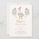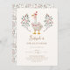 Cartão de convite de aniversário do tema ganso bonito com ilustração fofinha de um ganso com chapéu de festa e uma coleira de raposa com botânicos de morango vermelho. O texto diz "XX é um ganso de bobo!"