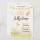 Celebre o seu grande dia com este adorável convite de primeiro aniversário "Um Bobo Ganso"! Apresentando trabalho de arte de aquarela branca, balões pastéis e um ganso de festa doce, este charmoso design é perfeito para uma fazenda divertida ou tema de aniversário rústico. Também disponível como download digital.