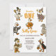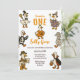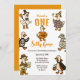 Um adorável convite de primeiro aniversário com um design de ganso bobo de Halloween. Divertido para festas de fantasia ou festas de outono!