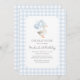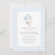 Convide amigos e família para comemorar seu aniversário com este elegante convite azul de gingham ganso temático.