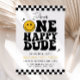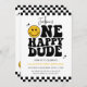 UM CARA FELIZ - Este super fofo retrô UM CONVITE DE primeiro aniversario FELIZ, CARA, apresenta um sorriso retrorreflector amarelo e preto com olhos relâmpagos, e a habilidade de adicionar a foto de seu homenzinho na parte de trás. Este Convidado Feliz de Aniversário é certo que completará qualquer festa de aniversário de Um Cara Feliz! Ao usar o software Zazzle fácil de usar (sem download necessário) no seu navegador, você simplesmente compra e personaliza tudo no mesmo lugar. É tão fácil assim!