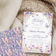 Celebre a futura mamãe com um convite sonhado que parece uma brisa de primavera. Este design romântico e caprichoso apresenta borboletas delicadas pintadas à aguarela a esvoaçar entre flores silvestres suaves em tons de rosa beije, roxo lavanda e pêssego. O texto "Uma pequena Borboleta está a caminho" dá a este chá de bebê um início encantador e informa aos convidados que é uma menina a caminho. Uma escrita estilo manuscrito e um layout elegante estabelecem o tom para um encontro de coração. Perfeito para um chá de bebê de menina com tema boho, jardim ou caprichoso.
