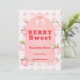 Celebre o seu pequeno a caminho com este encantador Convite ao Chá de fraldas Berry Sweet. Apresentando um delicioso fundo cor-de-rosa, morangos cor-de-rosa, florais florescentes e um arco de fita rosa suave, este convite inspirado em coquetes é perfeito para um chá de fraldas doce e na moda. BBS1009