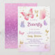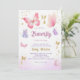 Um pequeno convite para Chá de fraldas de boho rosa-rosa com borboleta