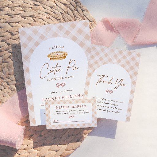 Celebrar a doce chegada de uma garotinha com estes encantadores convites para o chá de bebê "Cutie Pie"! A frente da placa apresenta um padrão de gingham pintado manualmente suave com uma cobertura de arco de boho. No topo do arco, há uma torta de aquarela fofa. As palavras "Uma pequena torta engraçada está a caminho" são escritas, com "torta engraçada" em cartaz moderno. Um delicado arco cor-de-rosa separa as duas seções do texto, levando ao nome da futura mãe e a todos os detalhes importantes do evento. A parte de trás da carta é cor-de-rosa, adicionando uma adorável pop de cor. Perfeito para aconchego de outono ou de inverno, chás de fraldas temáticos rústicos, ou pequenas celebrações íntimas onde o calor e o encanto estão no coração do evento. Visualize a coleção vinculada nesta página para itens correspondentes ou visite nossa loja para obter mais designs!