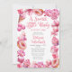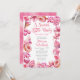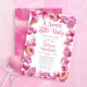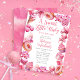 Sabemos que não pode esperar para ver seu "Querido Bebê" e este design Chá de fraldas com tema doce celebra você e seu pequeno com glória rosa! Uma deliciosa trama de padaria e um quadro cor-de-rosa doce rodeia os detalhes do seu chá de uma forma tão elegante. A parte de trás apresenta uma espiral de algodão doce para cima desta design mais doce do que doce.