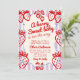 Se você estiver procurando um elegante convite exclusivo e personalizável para chá de fraldas de morango, isso é perfeito para você. Como podem ver, ele apresenta um roteiro manuscrito de um bebê doce de fruta está a caminho. E morangos desenhados à mão em ambos os lados. E borda ondulada azul de armação e listras púrpuras de cor d'água. Tudo em vermelho magenta sobre fundo creme. Muito fácil de personalizar e usar. Então pegue e masculine seus convites muito comprometidos.