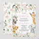 Prepare-se para dar as boas-vindas à sua pequena selvagem com este adorável Convite para Chás de fraldas de Uma Menina Selvagem. Esta doce design apresenta um grupo de animais safari incluindo um leão, elefante, girafa e zebra. Cada coroa floral rosa vestida ou floral escondido atrás de seus ouvidos. Verde-claro e flores cor-de-rosa suave adicionam um toque feminino e caprichoso a este convite com tema da selva. Perfeito para um safari, selva, ou chá de fraldas "selvagem" de uma menina, este convite reúne beleza e aventura em uma adorável design. BBS393