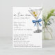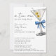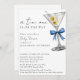 Um Tini está a caminho do Simples Convite de Chá de fraldas Azul Martini com Código QR - Um convite simples, minimalista, para chá de fraldas de aquarela para um menino. Apresentando caligrafia de script e fonte de bloco elegante. Uma ilustração aquosa de um martini sujo com duas azeitonas e um arco azul coquetel enfeita o canto superior direito. Edite este modelo de convite de chá de fraldas com seus próprios detalhes de evento. Facilite o acesso de seus convidados ao registro do bebê adicionando o URL do site do Registro do bebê ao modelo de Código QR na parte traseira do convite. Todo texto é editável. Também disponível como um download digital instantâneo, uma forma ecologicamente correta de enviar convites via texto, email ou mídia social.