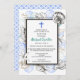 Uma coleção de conchas marinhas rodeia uma moldura dupla simples neste convite de batismo. Uma cruz azul acentua o topo. A parte traseira tem um padrão marítimo para completar o tema.