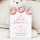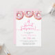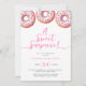 Convide seus convidados com este adorável convite para chás de fraldas, tema de rosquinha, para uma doce surpresa! Apresentando rosquinhas cor-de-rosa com borrifos coloridos, esta design é perfeita para uma celebração de uma menina. A frase "Uma Doce Surpresa" acrescenta um toque lúgubre. Um fundo branco limpo e um layout moderno facilitam a personalização. Disponível como cartão impresso ou download digital.