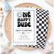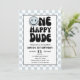 Convite Um Feliz Cara Azul Feliz Rapaz Primeiro Aniversári
