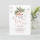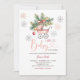 EDITÁVEL Feliz Pequenos Flocos de Neve de Natal Chá de fraldas Convite para Enfeites de natal Elegante Rosa Flecha Folha Chá de fraldas