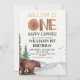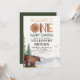 Convite de 1º aniversário fofo e único de floresta, urso - um feliz campista.