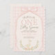 Convite de 1º Aniversário Um Ganso Bobo Laço Rosa Floral
