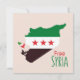 Um design com a bandeira da Revolução Síria dentro no mapa da Síria, com pombos de paz e a frase "Liberdade na Síria".