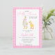 Bem-vindos convidados para a sua celebração com este divertido convite para chás de fraldas cor-de-rosa com gingham apresentando uma ilustração de ganso de bobo branco. O encantador padrão inspirado no país adiciona um toque alegre e aconchegante, perfeito para um primavera ou chá de fraldas de verão. Quer você esteja hospedando uma reunião no quintal ou uma festa no interior, este convite traz alegria e charme de eterno para o seu evento especial.