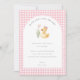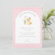 Um Patinho a Caminho Cartão de Agradecimento para Chá de Bebê - Envie uma nota sincera de gratidão com este doce Cartão de Agradecimento para Chá de Bebê do Patinho. Com um adorável patinho em aquarela com um laço delicado ao lado de flores suaves, este design é emoldurado por um charmoso fundo xadrez rosa para um visual atemporal inspirado em berçários.