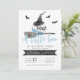 Uma aquarela com chapéu e uma doce abóbora branca e azul fará você amar esse convite para o chá de fraldas de halloween. "A Little Boo is Quase due" está escrito em letras brancas. Adicione suas informações de rsvp na parte inferior. O lado inverso da placa é azul para corresponder à frente.
