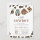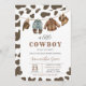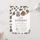 Celebre a chegada do seu garotinho com o nosso Convite para Chás de fraldas A Little Cowboy! Este convite apresenta pontos clássicos de vacas marrons, evocando o espírito do Velho Oeste. Roupas de vaqueiro, um chapéu, e calçados minúsculos pendurados numa linha, acrescentando um toque lúdico e rústico ao tema do seu evento. Perfeito para um chá de fraldas inspirado no rodeio ou no tema ocidental, este convite captura o charme de um pequeno vaqueiro a caminho. Que este adorável convite dê o tom para a sua celebração do Oeste Selvagem! BBS719