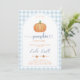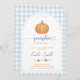 Celebre a chegada da sua abóbora com o nosso adorável Convite para Chás de fraldas! Este Modelo de Chá de fraldas de outono editável apresenta um charmoso design de Gingham Azul, perfeito para qualquer celebração de outono.