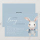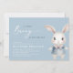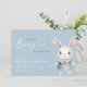 Bem-vindo ao garotinho com este adorável convite de chá de fraldas de matagal! Apresentando um coelho pintado à mão com aquarela vestida de azul macio com um fundo azul empoeirado correspondente, este design encantador é perfeito para uma celebração doce e elegante. A delicada letra da escrita e a tipografia serif clássica criam um eterno e um aspecto sofisticado. A parte traseira inclui um conveniente código QR para fácil acesso ao RSVP ou ao registro. Ideal para primavera, floresta ou chá de fraldas temático de livros de histórias. Personalize com os detalhes do evento e torne sua celebração mais especial!