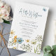 Flórida moderna de aquarela "um pequeno flor selvagem está a caminho" boho chic elegante, simples e primavera, convite para chá de fraldas branco, com flores silvestres naturais na fronteira florida e borboletas.