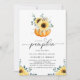 Um pouco de abóbora está a caminho! Este chá de fraldas do tema do outono apresenta abóbora aquarela com girassol amarelo, algodão e folhas de eucalipto. Personalize adicionando nomes, data, hora, local e outros detalhes do evento. Este convite para girassol rústico é perfeito para chás de fraldas de outono ou outono.